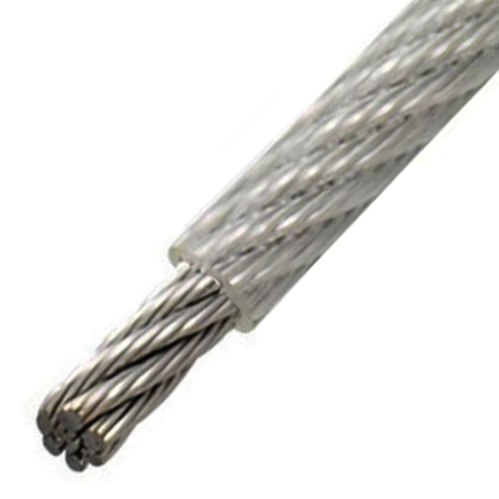 Трос средней жесткости в прозрачной ПВХ оплетке 5.0/7.0 мм  АРТ 814593 плетение 7X7 нержавеющая сталь А4